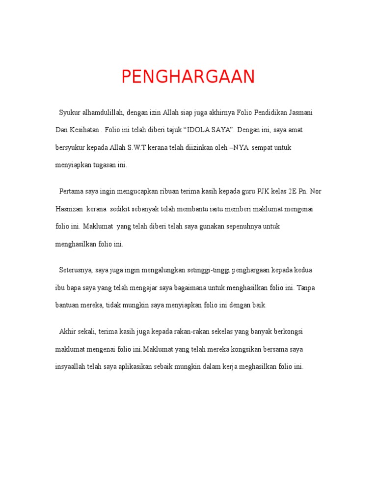 Contoh Penghargaan Kerja Kursus Pendidikan Jasmani