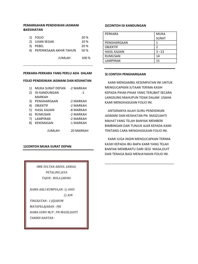 74374140 Folio Pjk Doc Folio Pendidikan Jasmani Dan Kesihatan Tajuk Sepak Takraw Nama Nur Farah Azren Binti Mohd Nazeri Tingkatan 4 Alpha Nama Course Hero
